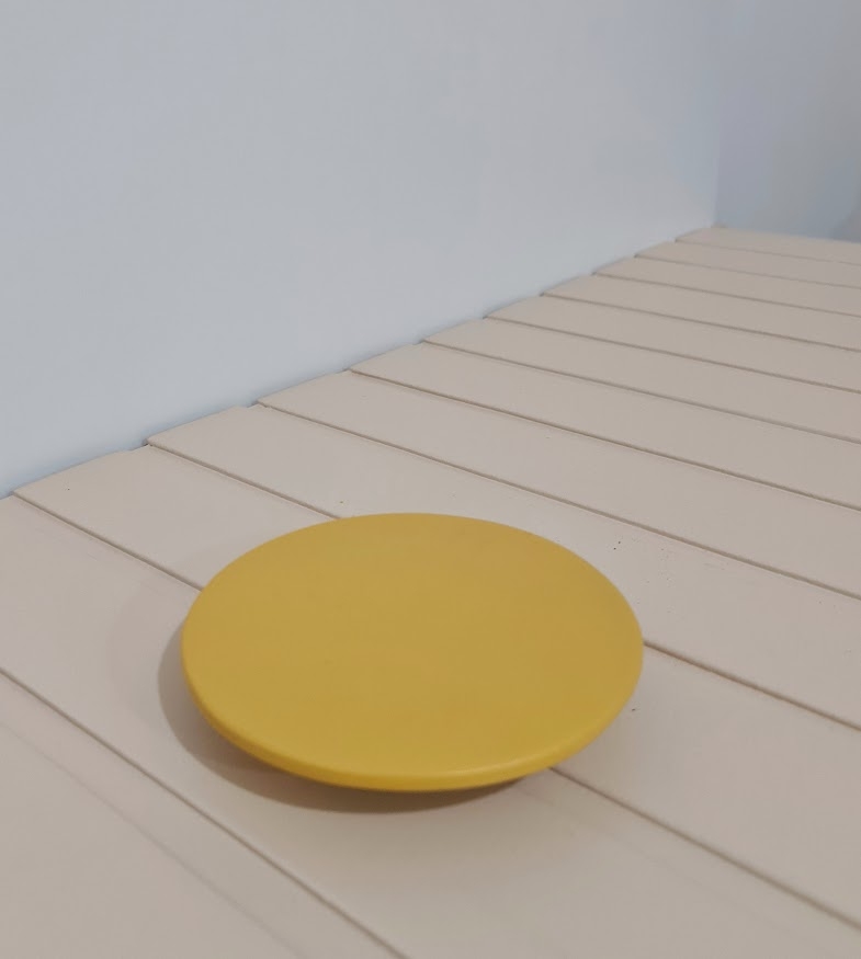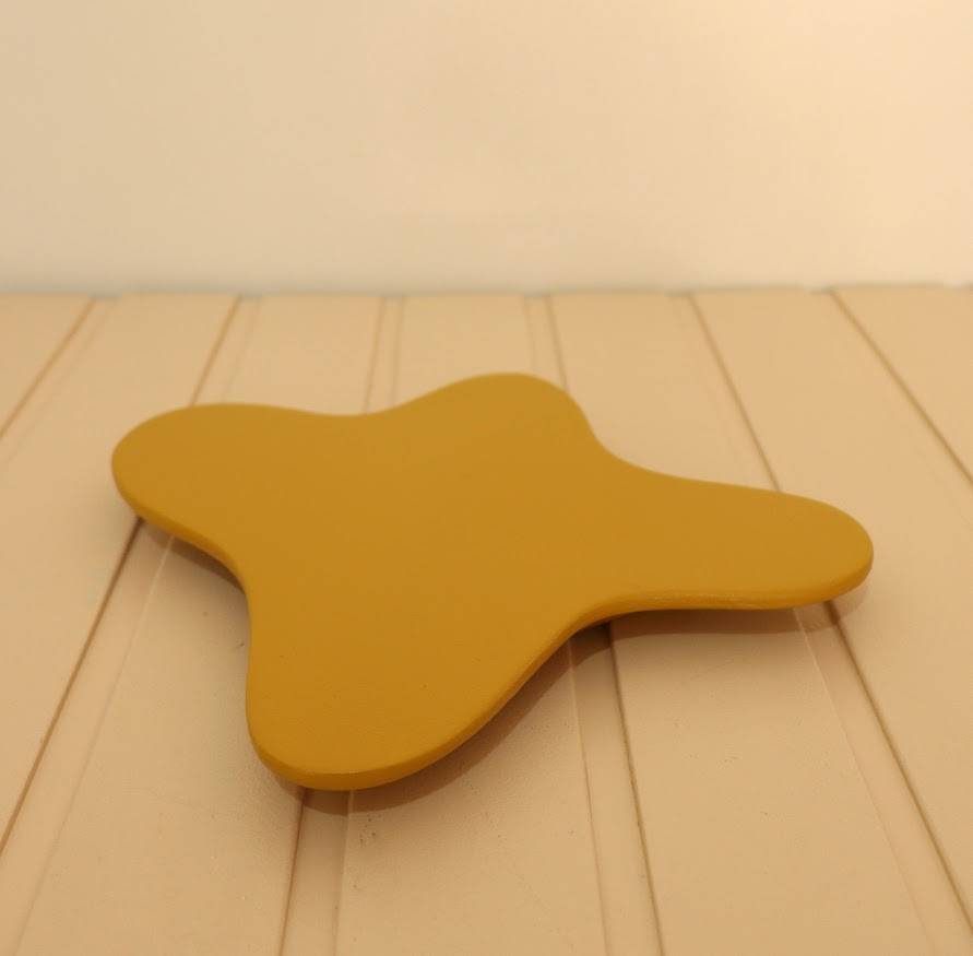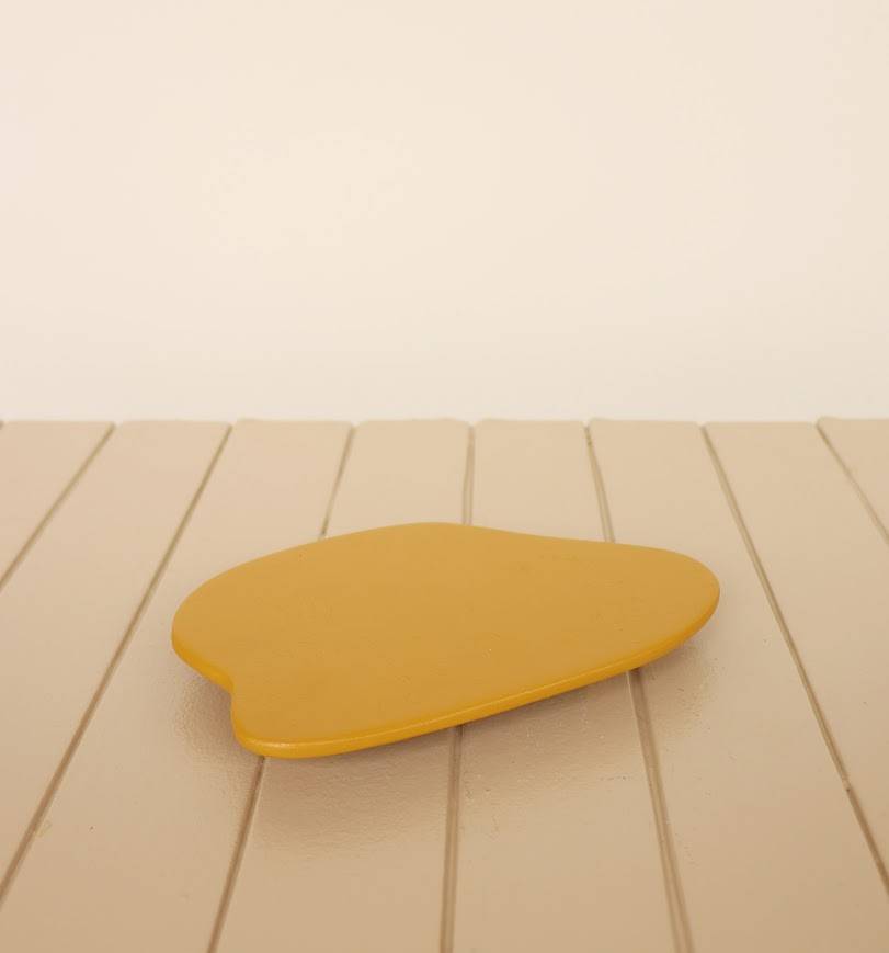 Bandeja madeira semi ovalada espiral mostarda 25c x 14,