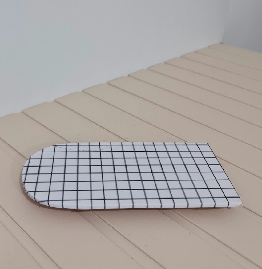 Bandeja semi ovalada branca grid preto