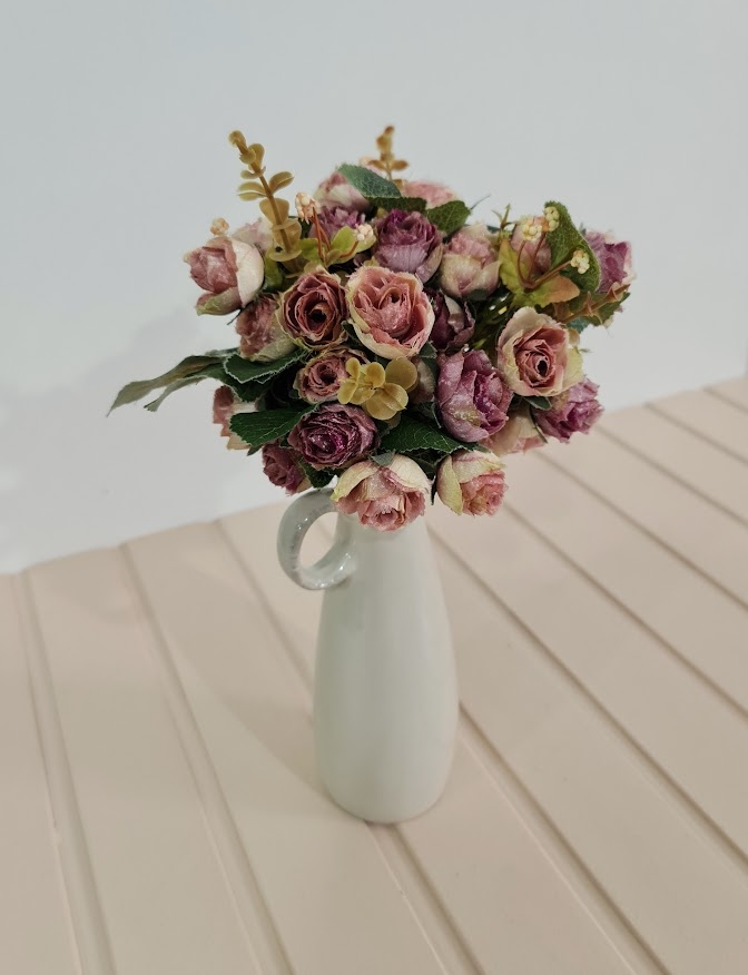 Ramalhete mini rosa c/ 21 roxo e bege P